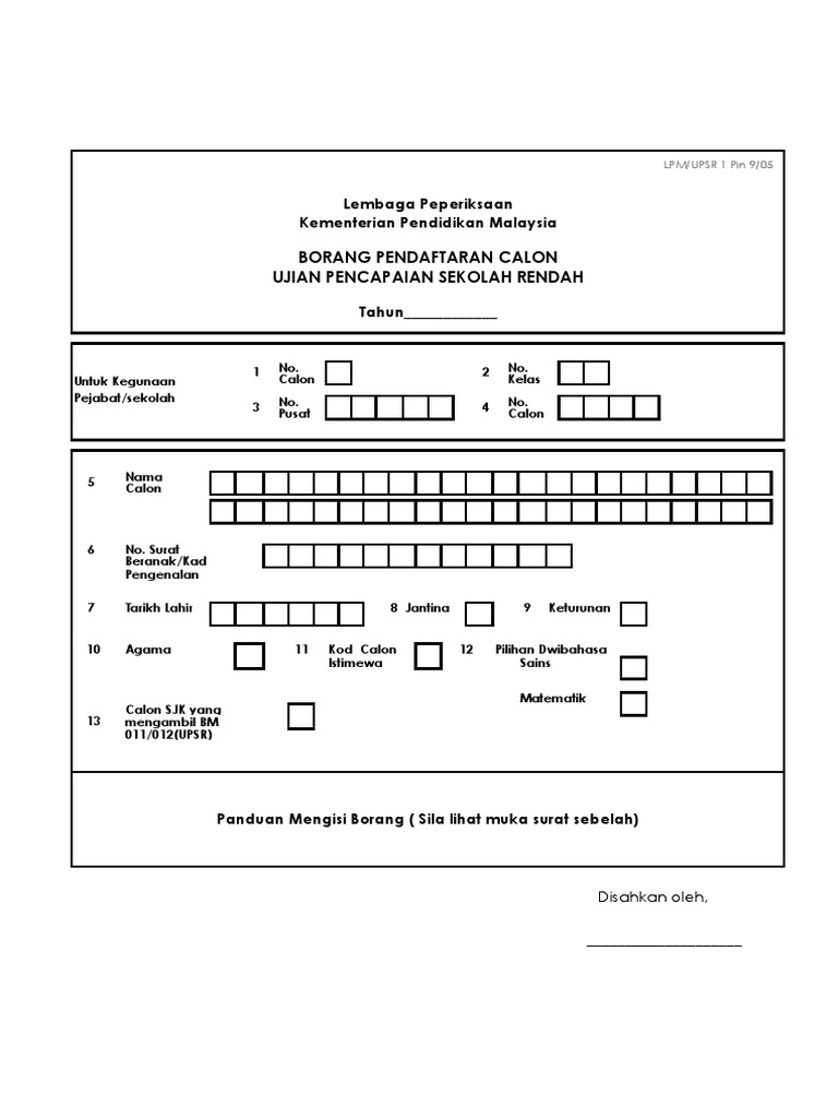 Borang Pendaftaran Calon Upsr Pdf